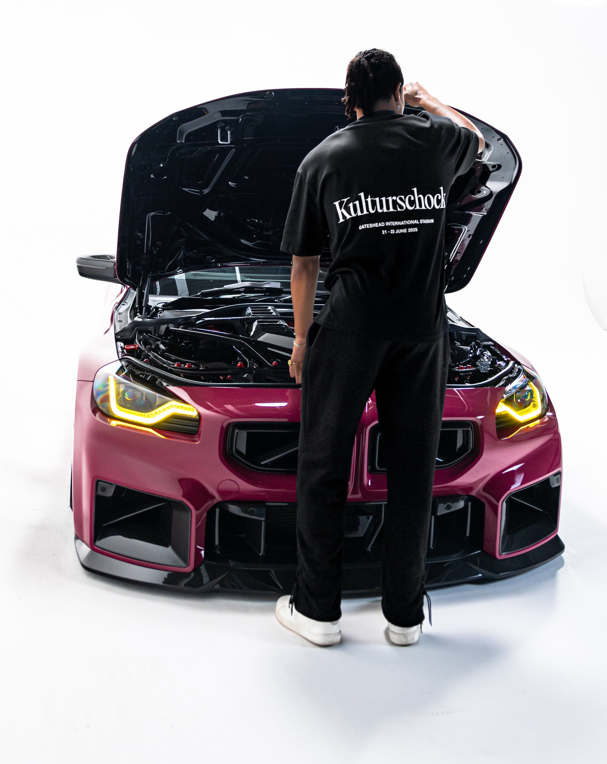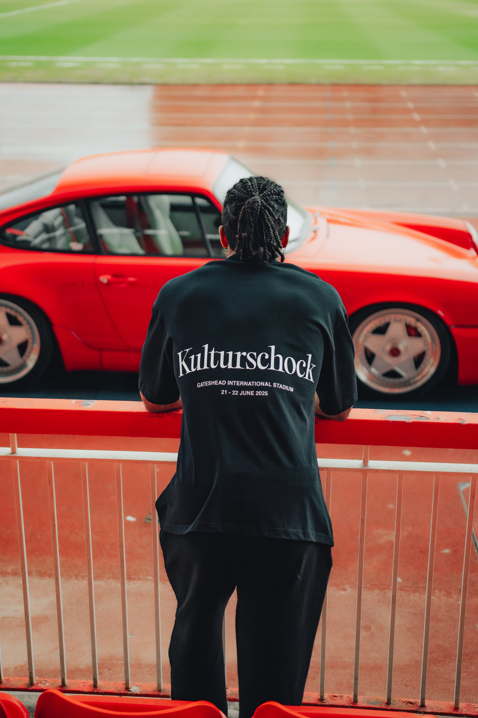 Made from 100% heavyweight cotton, this black boxy-fit tee delivers comfort with structure. Featuring the OG kulturschock logo silkscreened on the front left chest and a bold, oversized version on the back, it’s finished with the official date of the show. A limited-edition release for Kulturschock Car Show 2025, this tee is exclusive to the event — a wearable keepsake for those who were there.