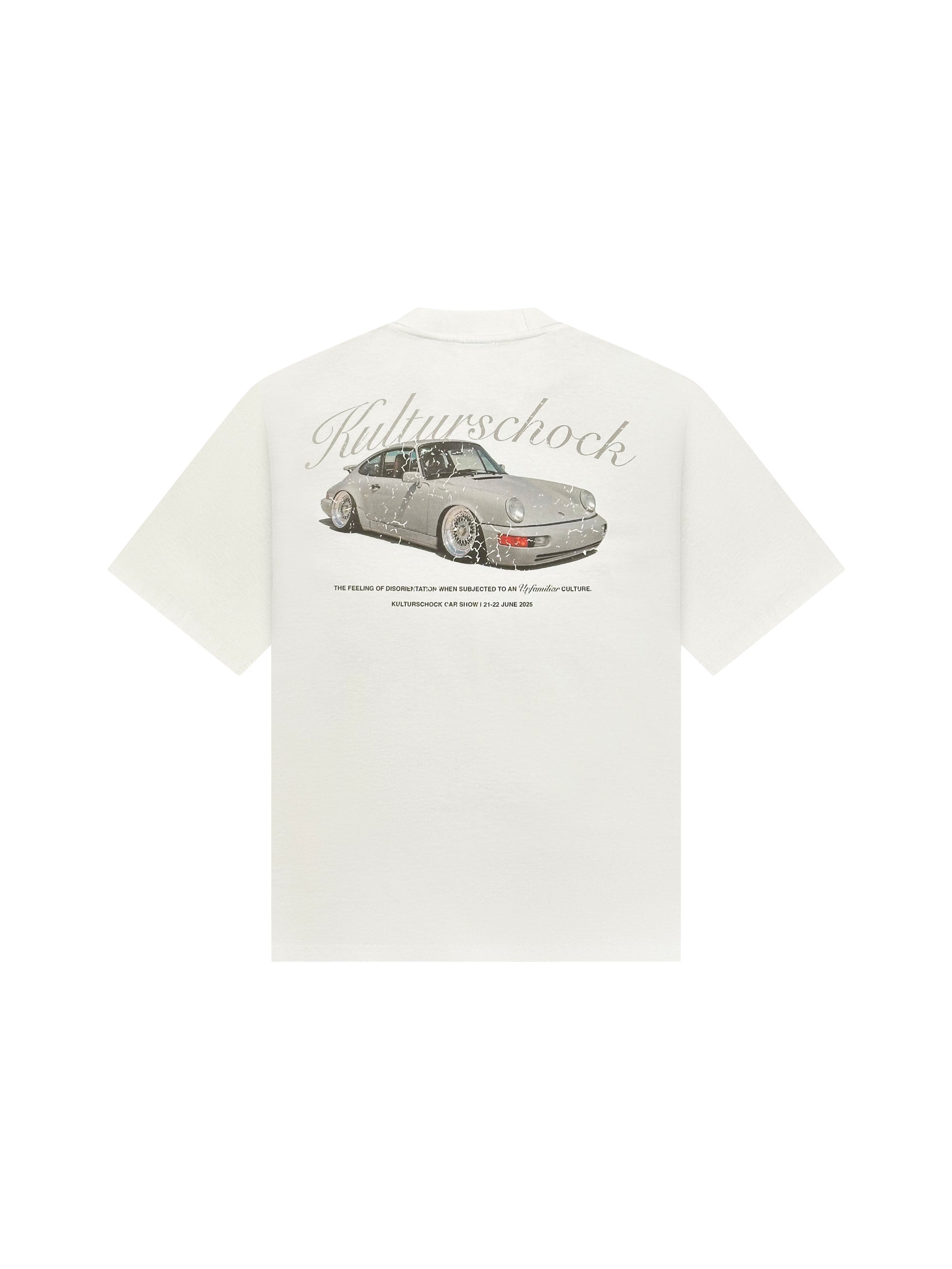 Cut from 100% premium cotton, this unisex, boxy-fit tee offers everyday comfort with a structured edge. The front keeps it clean with a subtle kulturschock script logo on the left chest, while the back makes a statement with a distressed Porsche graphic and our signature slogan. A timeless silhouette, reworked with a nod to speed, style, and subculture. Limited-edition release for Kulturschock Car Show 2025, this tee is exclusive to the event — a wearable keepsake for those who were there.